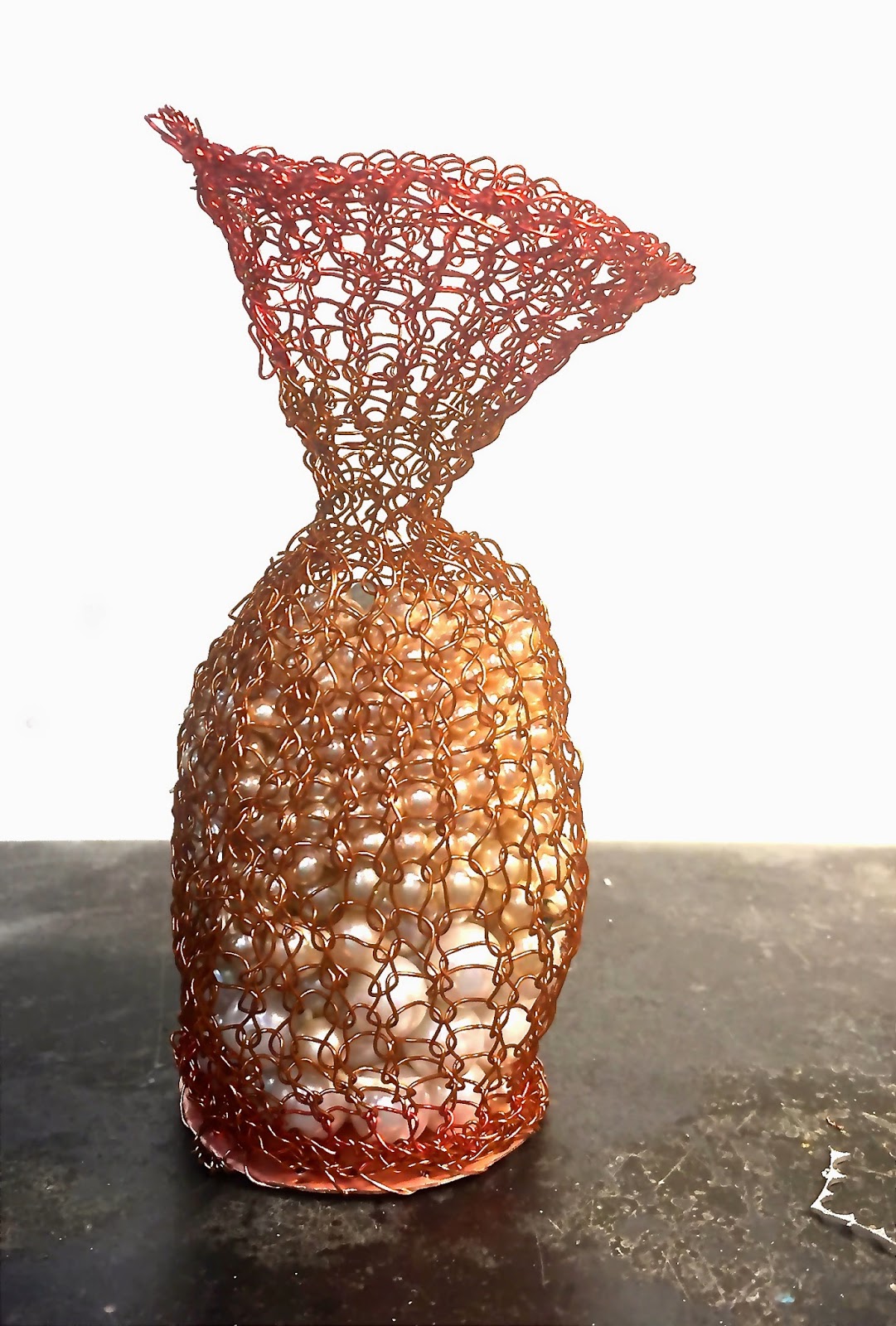 Memory vessel: Pearls of Wisdom. Knitted copper wire